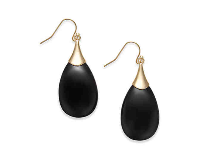 The rich tones and the smooth polished stones of these drop earrings by INC International Concepts create an enviable accent. Jet black teardrop set in gold-tone . Approximate drop: 1-1/2”. Lightweight for length.