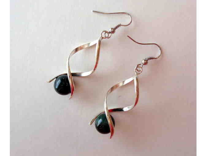 Twisted Earrings With Deep Green Bead -- Pre-Owned