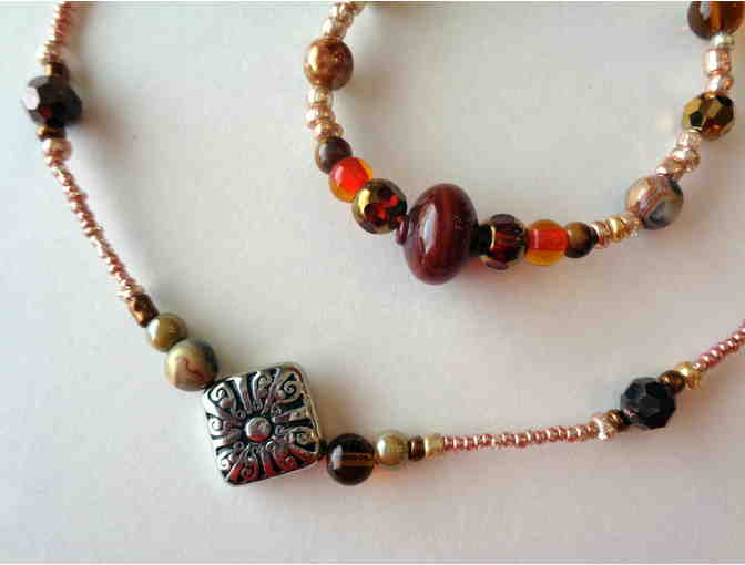 Handcrafted Pinks & Browns Necklace, Bracelet & Earrings Set -- New