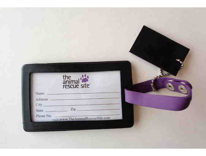 From the Animal Rescue Site, a colorful paw print vinyl luggage tag. Measures 2.5" x 4".