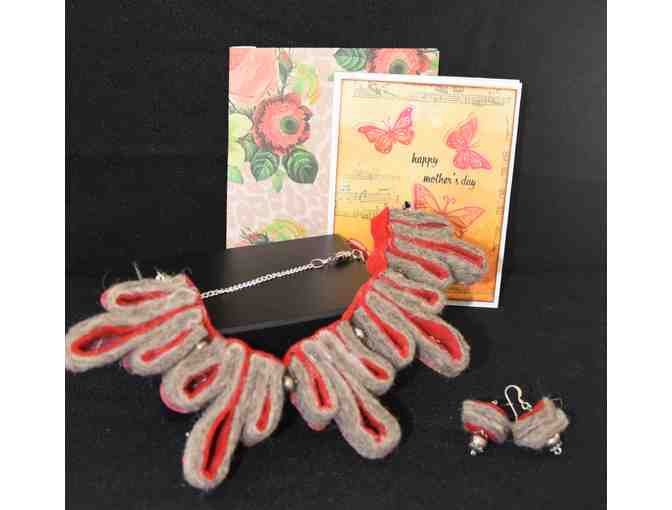Get a head start on Mother's Day! HM Jewelry created a handmade Mother's Day greeting card and a handmade felt jewelry set (necklace and earrings).