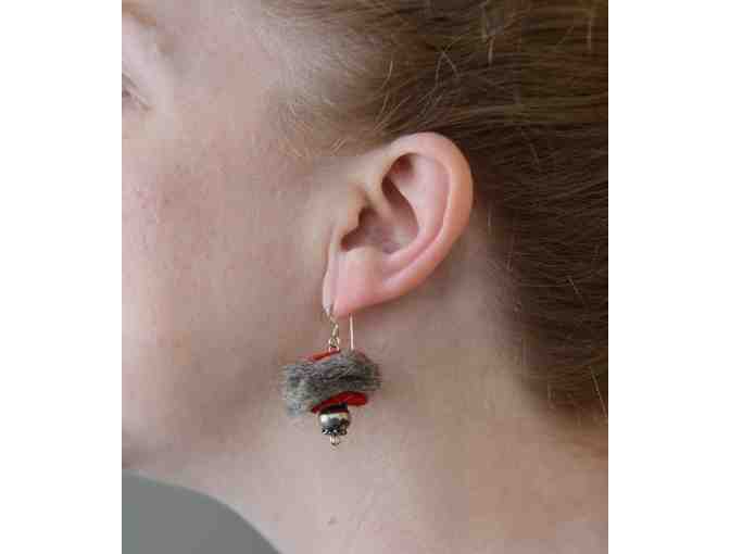 Necklace is grey and scarlet felt on a silver chain - 18" total length, 8" drop.