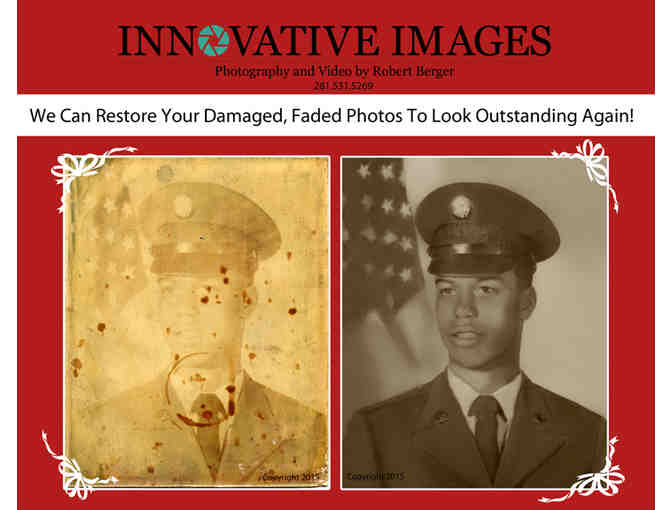 Keep your memories alive at Innovative Images. With this package you will receive a $100 gift certificate which can be used towards photo restoration.