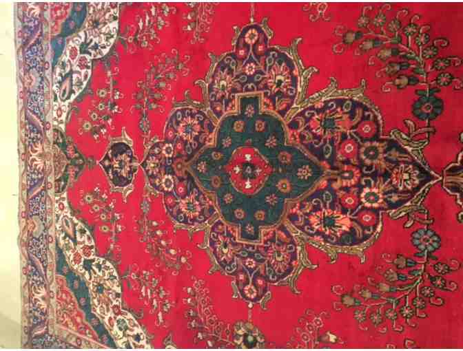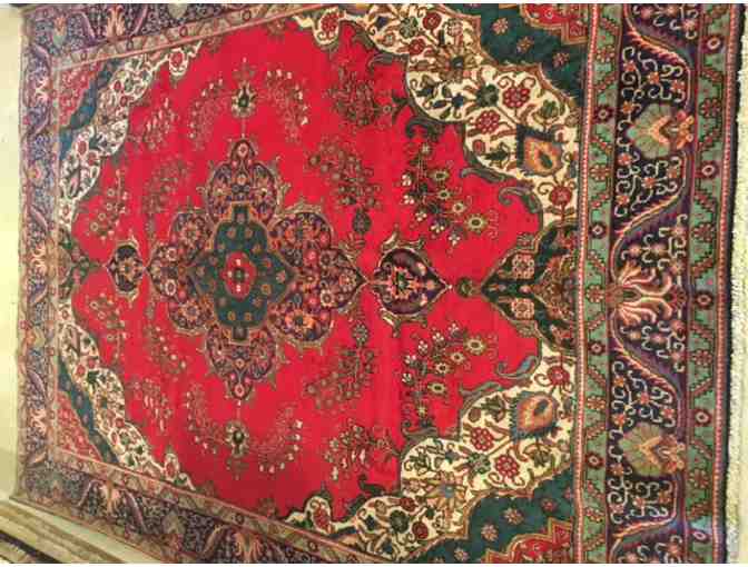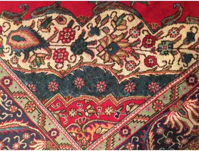 This beautiful rug is a Tabriz rug and was made in the city of Tabriz which is a center of master rug weaving in Iran. It is most likely that a rug this size is on a loom for 4-5 skilled weavers and a rug this size and intricacy would take approximately a year for those 4-5 people to weave. Weavers rightfully consider themselves artisans.