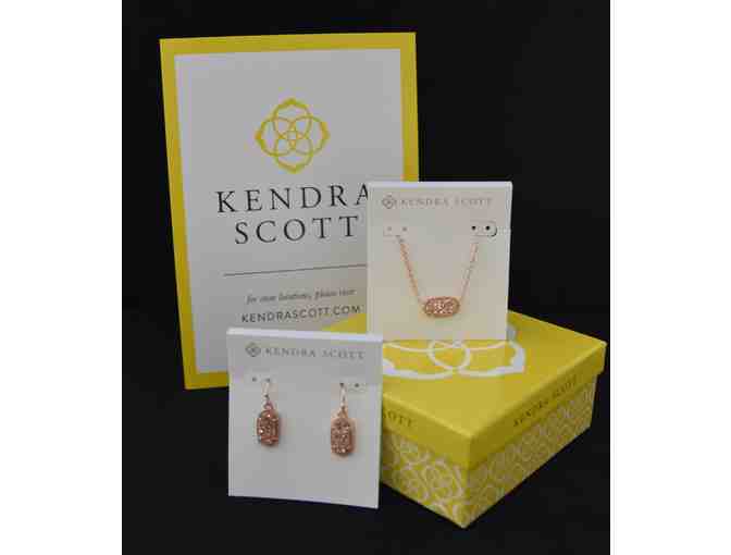 Turn any outfit into a stylish one when you wear this Kendra Scott Elisa necklace in rose gold and coordinating Lee earrings.