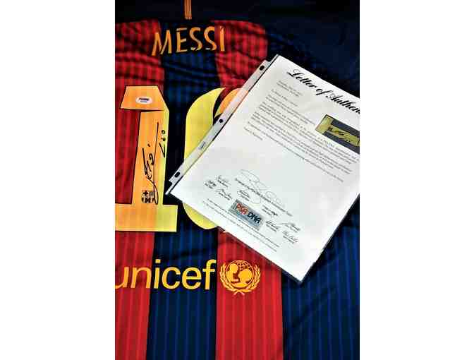 If you are a huge Barcelona fan and/or Lionel Messi fan, this item is for you!!! Buy this unframed jersey signed by the one and only Lionel Messi. This is a unique opportunity to buy a piece of soccer history.