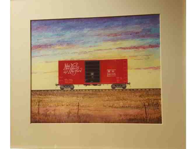 Original pastel drawing. Very cute decor for the train obsessed kid's room.
