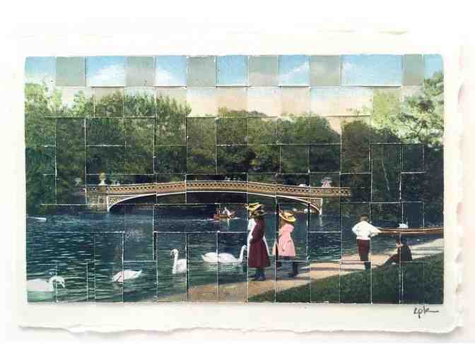 8X10 Framed and matted - cut and woven vintage photo postcards by renowned text and collage artist Carole P. Kunstadt.