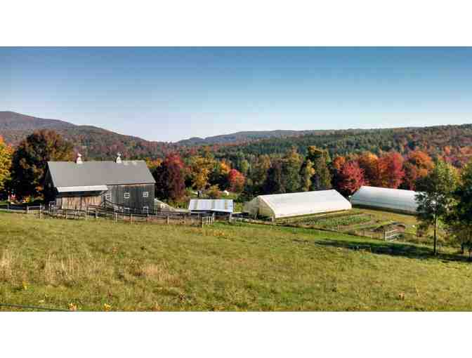 Eat, relax, restore and learn on our sustainable, diverse Vermont farm with a 2-night farm stay in our Barn Guesthouse. It includes a farm tour and starter breakfast basket with our farm-fresh food. Guesthouse has a full kitchen and our farm stand is stocked with our pasture-raised meats, organic vegetables, and ready to eat farm-fresh soups and other hearty and healthy delicacies.