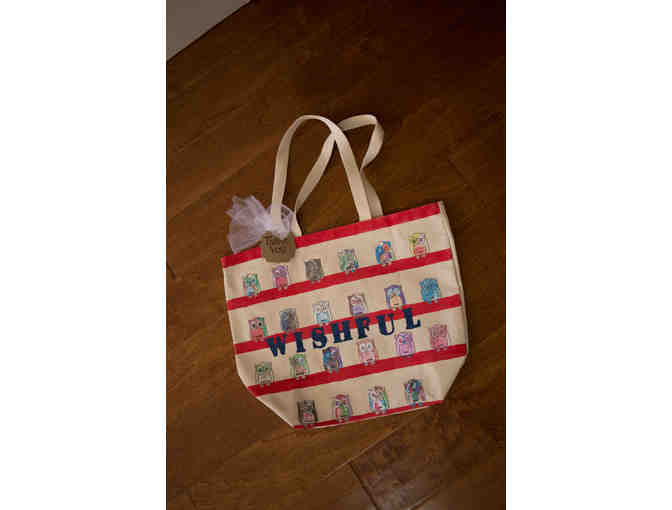 May it be more than “WISHful thinking” that you win this beautifully durable tote bag, with each owl lovingly hand-painted in vibrant watercolors by a student in WISH’s adorable TK class! With its double-stitched, sturdy shoulder straps, this bag is perfect for handling heavy groceries, books, toys, whatever your heart may wish! (measures 19”x 15")