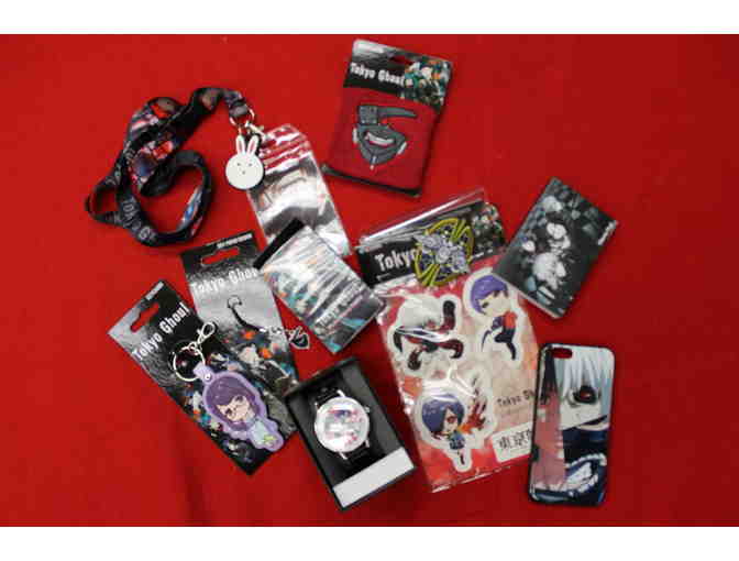 Living as a ghoul in the big city can't be easy, but some cool merch might ease the stress! This gift pack includes wristband, watch, playing cards, keychain, memo pad, lanyard , hardshell iPhone case, cell phone charm, stickers, and patch.