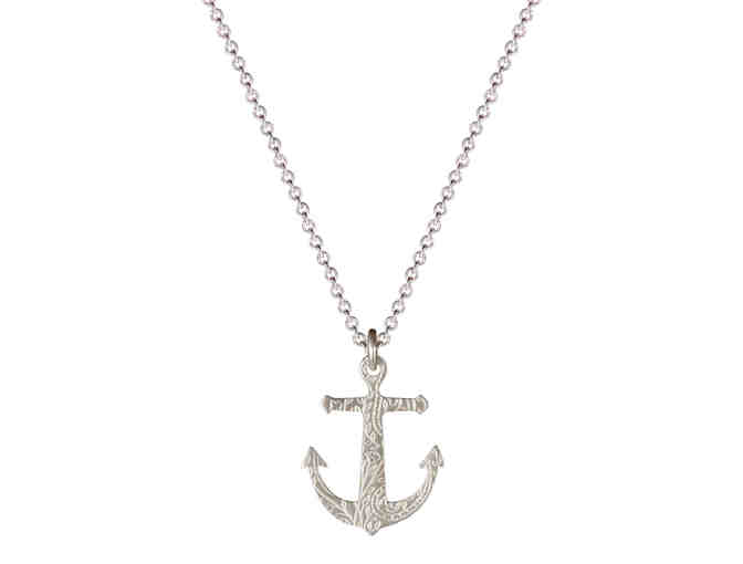 This large anchor is cut from a beautiful recycled sterling silver paisley pattern. A symbol of hope, the anchor measures approximately 7/8" in length and 3/4" at its widest. The pendant is available on natural cotton cord.