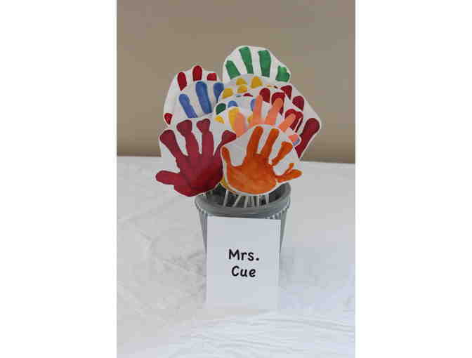 A vase filled with the handprints of each child in the class.