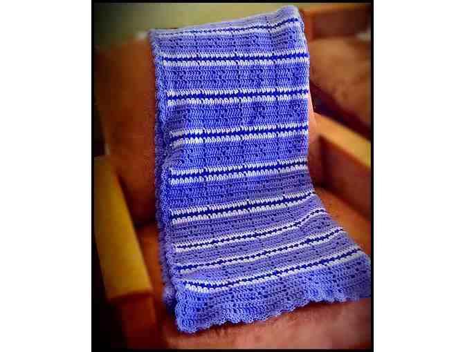 Sister Antoinette's one of a kind Hand Crochet Blanket in 3 shades of blue.