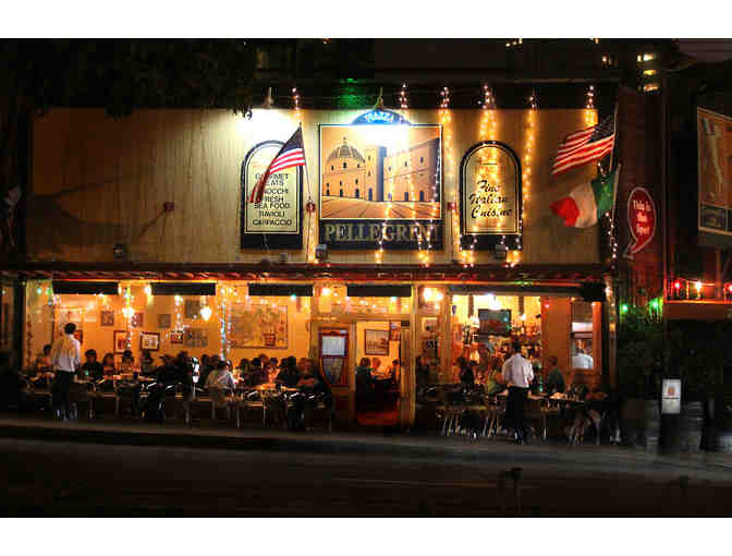 Piazza Pellegrini is an elegant casual restaurant with a warm atmosphere, exceptional service and fresh trattoria food in the heart of North Beach's little Italy. If you are looking for a romantic evening, business lunch, great time with friends and family or planning a special event, then you need look no further. Piazza Pellegrini offers an exciting array of menu choices inspired by Roman Italian classics. Our daily specials feature seasonal items such as fresh fish, game, seafood, local organic products and various house made pastas in creative fusion dishes. Our chefs take great care in preparing all dishes to order and will accomodate requests to change ingredients and menu items to suit your taste and needs. $75 gift certificate