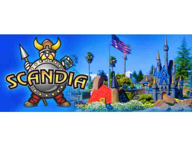 Mini Golf Courses Scandia offers two award winning miniature golf courses. Both of our 18 hole courses featuring ponds, fountains and a variety of obstacles to overcome. Our eye for detail will not go unnoticed as you set your sites on the royal castle, majestic mansions, quaint cottages and grandiose gardens. At dusk our courses are illuminated with a huge array of colorful lighting, a wonderful sight for both young and old. Our full time landscaping staff works very hard to meticulously maintain the grounds. We are sure that you will have a memorable experience testing your skill amongst the pleasant surroundings of Scandia's miniature golf courses. Four Complimentary Golf Passes. (One Person - 18 Holes, Scandia Miniature Golf).