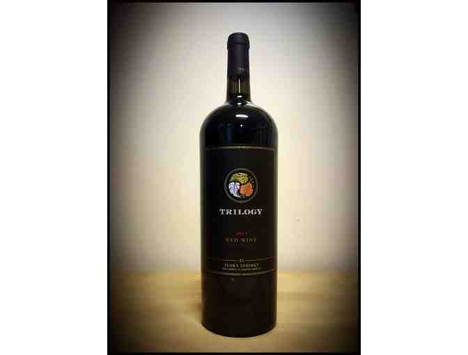 2013 Flora Springs Trilogy Red Wine This is a magnum of Flora Springs exquisite Trilogy Red Wine. It is a lively and complex wine that leaves hints of sweet plum, licorice and black cherries on your palate. An elegant wine and an excellent choice on any occasion.