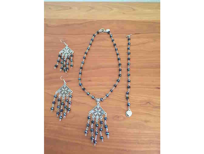 Black and Silver Colored Necklace, Bracelet and Earring Set