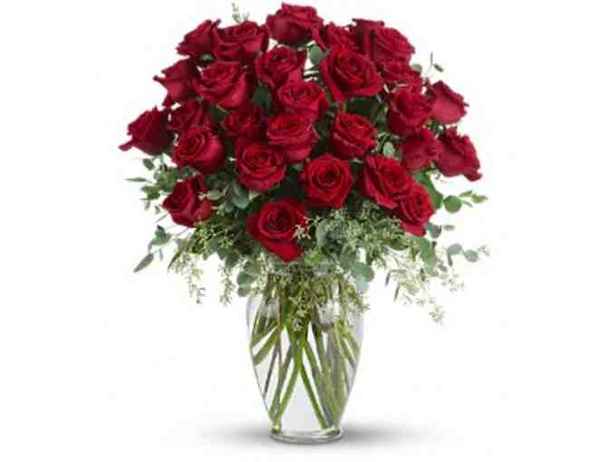 The winner of this package will receive three dozen long stem roses arranged in a high quality vase from A Beautiful Bouquet Florist.