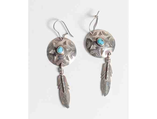 The winner of thisw package will receive on epair of STERLIN GSILVER AND TURQUIOSE "TRIBAL" EARRINGS with dangle feather.