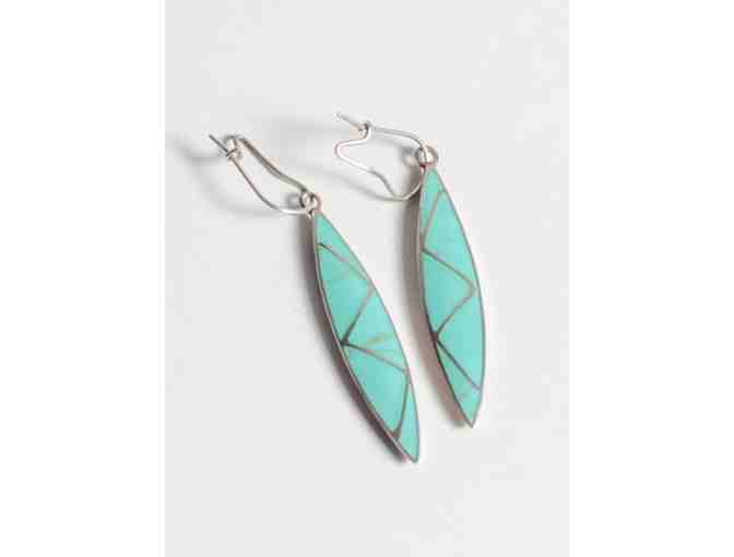 The winner of this package will receive one pair of TURQUOISE DANGEL EARRINGS WITH STERLING SILVER INLAY