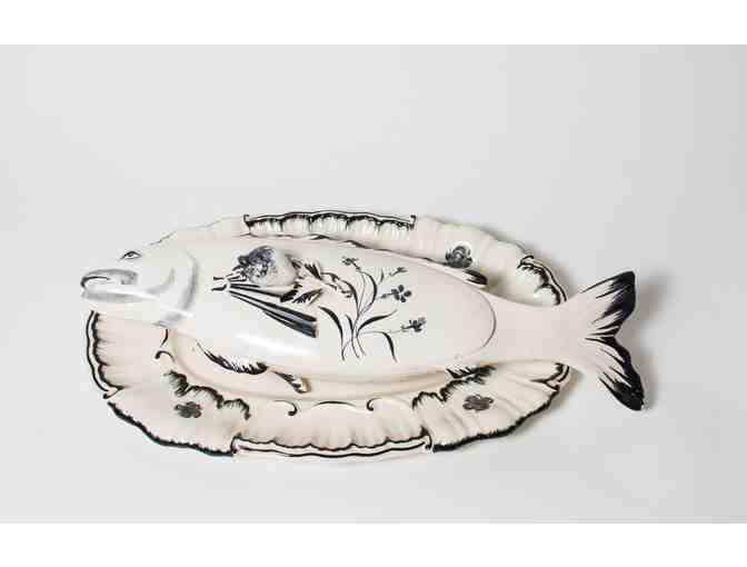 The winner of this package will receive this three-piece seafood serving platter made of porcelain.
