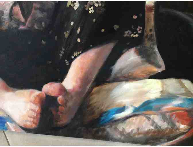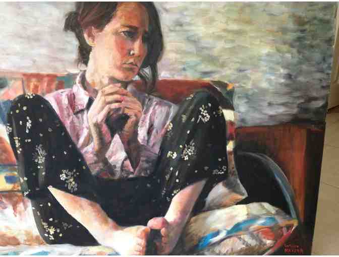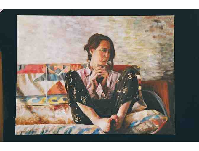 The winner of this package will receive a signed self portait oil painting from local artist Laraine Kaizer. Original oil painting signed by artist, 36'x48' 2 inch gallery wrapped canvas over frame, ready to hang wire attached in back, painted in June 2006. Could be described as realistic/ somewhat impressionistic portrait of a lady on a futon lost in thought, dramatic brush strokes, pastel colors.