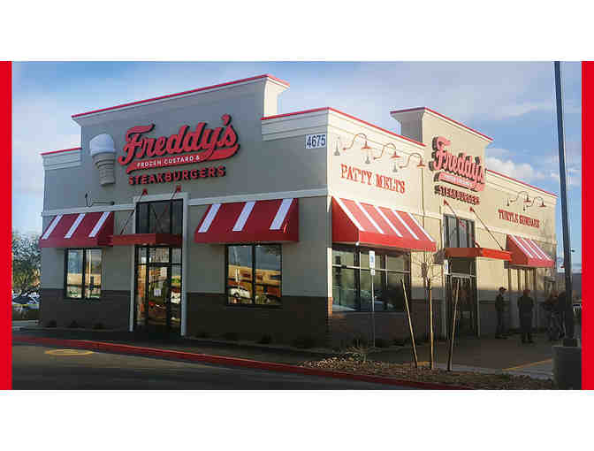 The winner of this package will receive one FREDDY'S STEAK BURGERS gift basket including 2 shirts , 4 steak burger combo gift certificates, 4 dessert gift certificates, and fry sauce