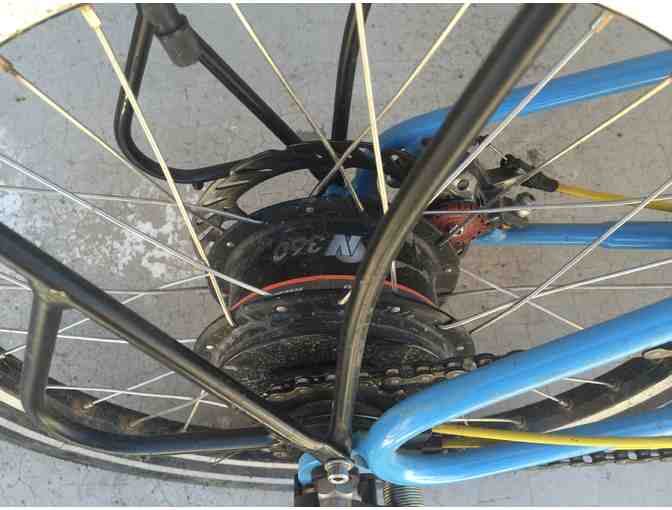 Bike Fridays are high-quality, made in the USA, folding bicycles made for travel. The "Pocket Llama allows your bicycle adventure to continue even when the pavement ends. It has wide tires to ride some trails or go gravel grinding. It is a bike with a comfortable ride and that easily travels with you. This Bike Friday is a medium frame fit for a woman or smaller framed man. It has numerous extra built outs, including a Nuvinci internal shift hub. Very slightly used, low-mileage and in excellent condition.