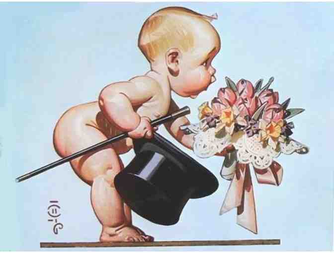 J.C. Leyendecker - Baby Holding Top Hat and Flowers