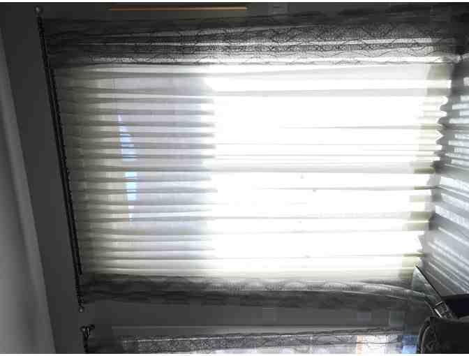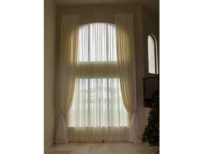 This custom-made, handcrafted package includes one manual-functioning sheer drapery, two side panels tied back in the bishop-sleeve style, and one fully upholstered cornice box in any of Decor 8’s Class A fabrics. The drapery ensemble will be especially designed to complement your home in color and texture, and will be custom-made just for you. Package includes: professional on-site measurements, design consultation, traversing drapery hardware, and white-glove installation.