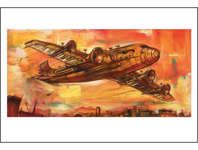 A recent winner of the Art Pop Street Gallery billboard contest. Now you have the opportunity to own this piece. It's the perfect balance between aviation engineering and musical instruments. The print is 19" x 13"