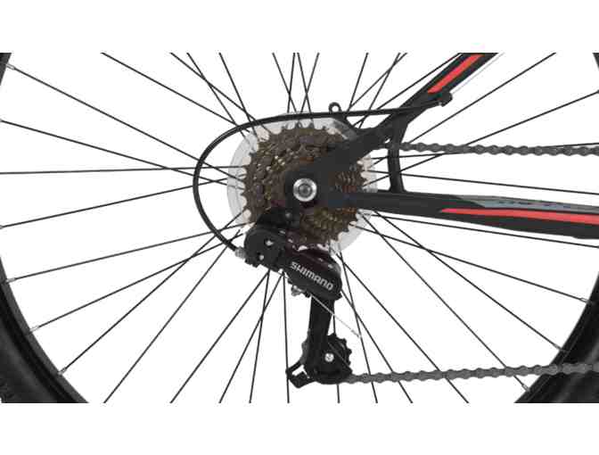 The winner of this package will receive this Huffy Ravine Men's Mountain Bike. Donate by Paul Hesselgesser. Bike is new and in an unopened box.