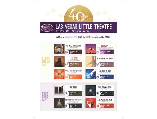 The winner of this package will receive 2 subscriptions to Las Vegas Little Theatre's 17/18 Mainstage Season.