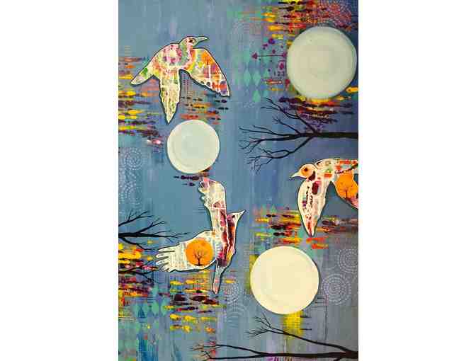 Kitty Miller is a mixed media artist who specializes in wildlife portraits and energetic paintings. Her favorite medium is acrylic paint and collage. She just loves to mix antique and special papers with paint to create one of a kind masterpieces. She loves mixed media art and therefore does everything from jewelry, sculpture, sewing, painting, drawing, writing and more. Kitty grew up with her Grandmother who nurtured her love of art and was constantly doing some type of craft with her from a young age, throughout high school and college she was always enrolled in art classes and as an adult Kitty has attended a number of retreats and now teaches at her favorite art retreat, Art and Soul. Kitty is a design team member for DecoArt, and will be creating blog posts and instructional videos for them monthly. She likes to do really vibrant mixed media pieces and their product line fits her needs perfectly. Kitty is a contracted artist for White Oak Gallery in Silverton OR where she teaches and they carry her line of jewelry and feature her art. Her first book is in publishing and due to be out soon it is a Children’s book she did with 2 others. (Soon to be featured on her blog) She is in the process of doing a few more children’s books.