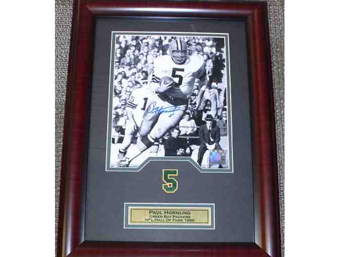 Paul Hornung -8”X10” photo autographed, framed with laser cut double suede matted