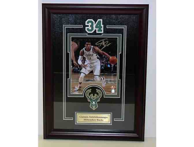 Giannis Antetokounmpo –8”X10” photo autographed, framed with laser cut double matted