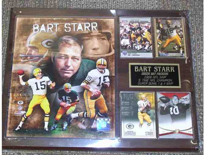 Bart Starr - 12X 15" plaque with 8x10 photo, cards and engraved plate