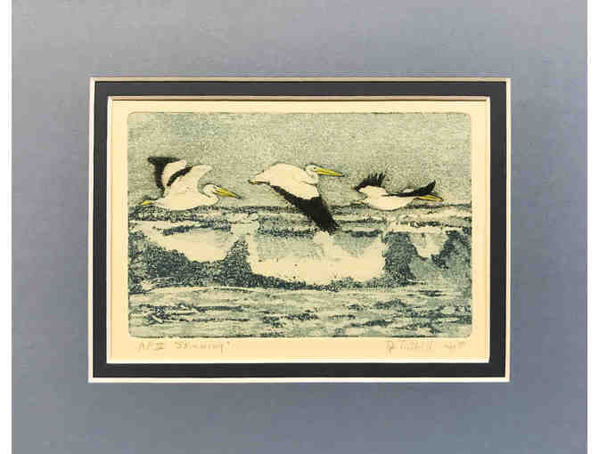 "Skimming" - Matted Etching of Pelicans