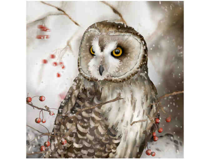 Beautifully rendered image of the short eared owl, signed by the artist. Created with unique technique as digital painting based on original watercolor painting. Printed by the artist with archival ink on 60# acid free paper.