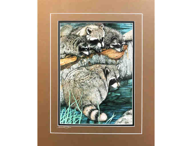 "The Bandits" - Signed, Matted Print of Original Drawing of Raccoons