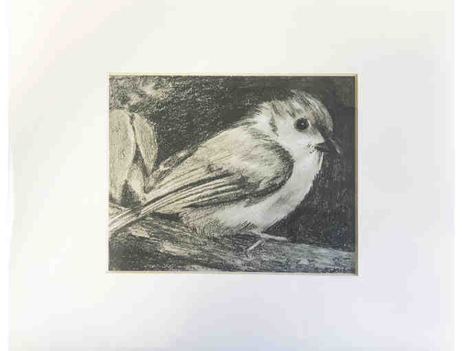 "Tufted Titmouse" - Matted Original Charcoal Drawing