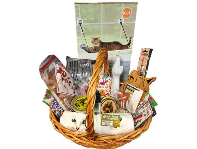 Who doesn’t love their kitty(s)? This basket is perfect for you and the feline(s) in your life. Your cat will love lounging on this window kitty sill, two handmade cat dishes, a teaser wand, a pet laser, catnip, bonito flakes, two heated pillows and cat treats. You will receive a cat bottle of Riesling wine, a cat lover's stemless wine glass, 4 laser engraved handmade kitty paw print coasters, a kitty wine stopper, two fancy cat towels, a wooden cat wall hanging an industrial litter scooper and a $25 gift card to Pet Food Express! Your furry friend(s) will thank you!