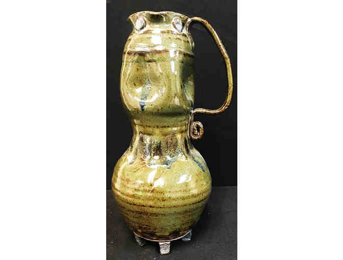 This unique pitcher was handmade by potter Nahid Assar. Use it as a unique centerpiece or to display flowers.