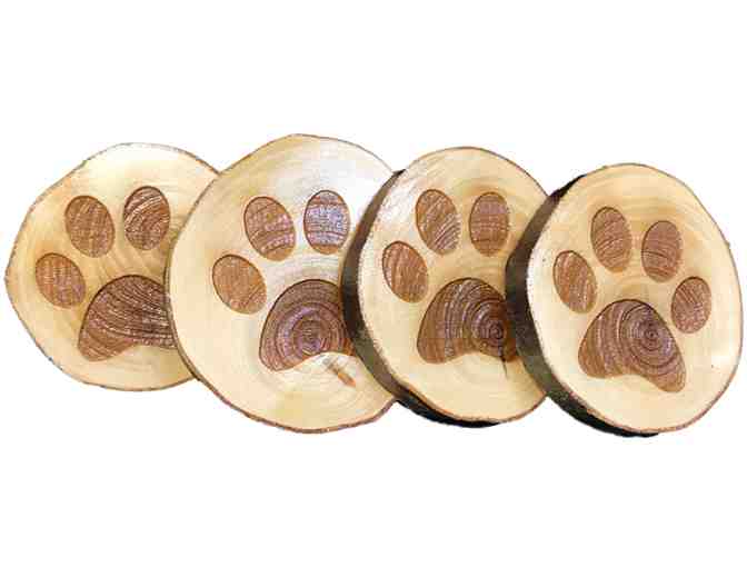 Rustic Natural Wood Coasters - Paw Print Engraving