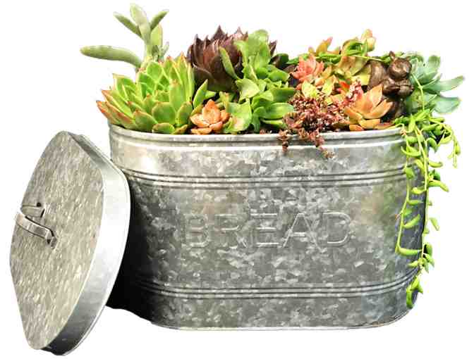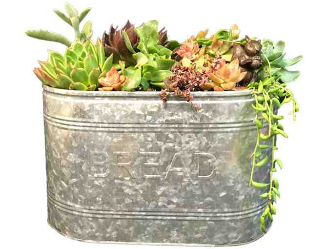 This wonderful succulent arrangement was made by the green-thumbed WCSV volunteer Kathleen Cordova. This arrangement was made by repurposing a vintage-style bread tin.