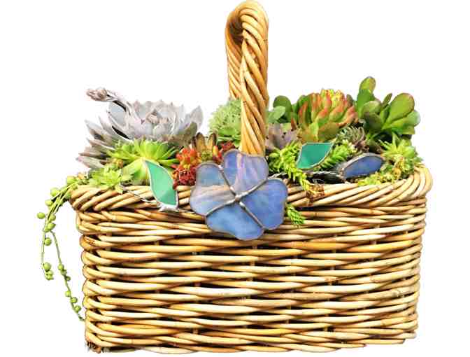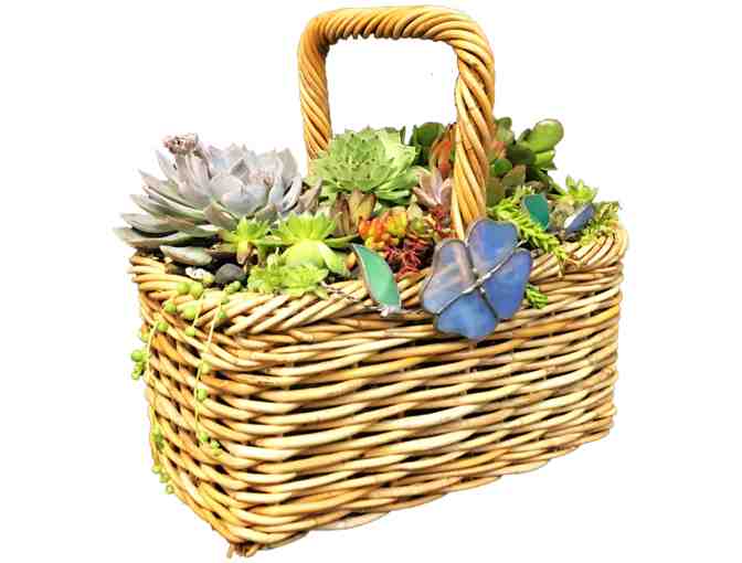 This charming succulent arrangement was made by the green-thumbed WCSV volunteer Kathleen Cordova. This wonderful arrangement was created in a sturdy, outdoor-suitable basket.