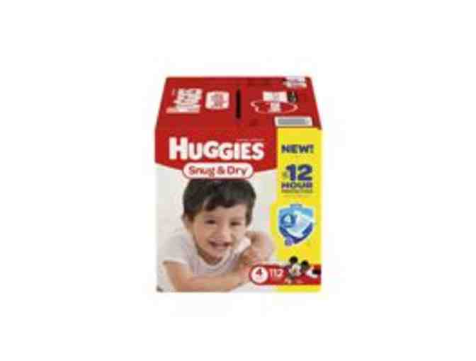 | HUGGIES SNUG AND DRY DIAPERS, SIZE 4, 112 COUNT One retail case of 112 count diapers |