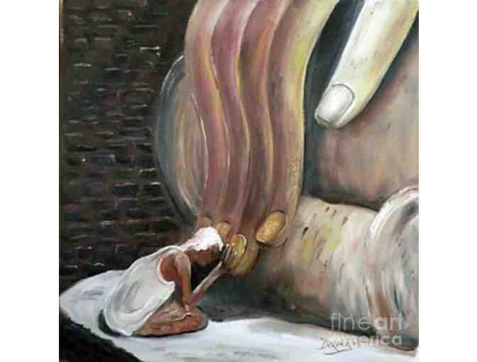 This work of art will come to life with the texture and depth of a stretched canvas print. Printed onto one of our premium canvases and then stretched on a wooden frame ; 5/8" x 5/8" stretcher bars (museum wrap). Your canvas print will be delivered to you "ready to hang" with pre-attached hanging wire, mounting hooks, and nails.