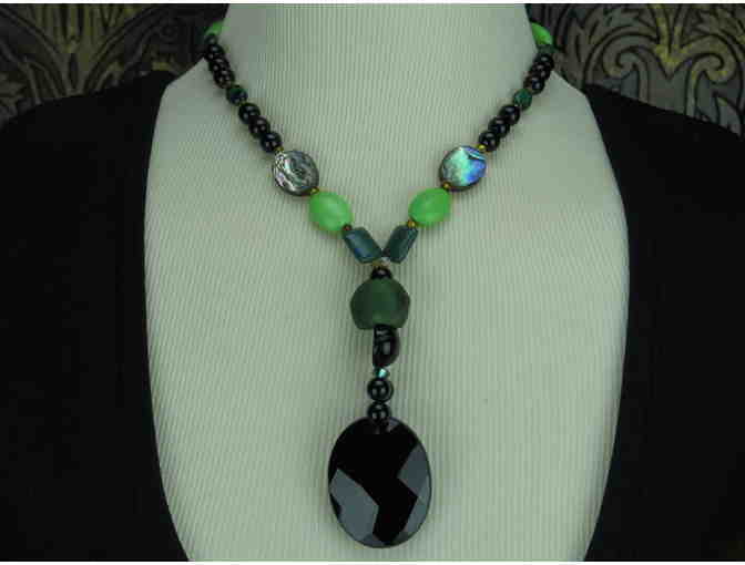 Bold & Beautiful 1/KIND Necklace w/Onyx, Paua Shell and Ancient Glass!